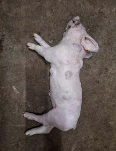Regelmatig kunnen we bij allerlei merkwaardigheden een (waarschijnlijkheids)diagnose stellen. Dit is een voorbeeld waarbij ook wij geen duidelijk idee hadden. Fijn dat onder andere de Gezondheidsdienst voor Dieren de mogelijkheid biedt om sectie uit te laten voeren. Deze big is dan ook door een patholoog beoordeeld.
