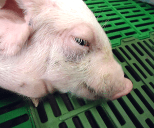 Oedeem betekent zwelling en is kenmerkend voor deze E. Coli infectie bij biggen.